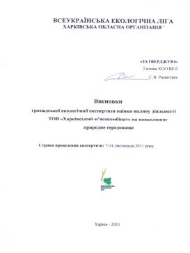 В цьому році Харківська ОО ВЕЛ направила свої сили на проведення громадських екологічних експертиз. Так було проведено експертизи відносно відповідності екологічному та містобудівному законодавству проекту реконструкції центрального парка ім. Горького м. Харкова, відповідності екологічному та містобудівному законодавству проекту технічного переоснащення відділення виробництва безалкогольного пива по вулиці Роганська, 161; оцінки впливу діяльності ОВ «Харківський м’ясокомбінат» на навколишнє середовище; оцінки впливу реконструкції ділянки по виробництву асфальтобетону ТОВ «Паркінг+» щодо відповідності вимогам екологічного та містобудівного законодавства України.
