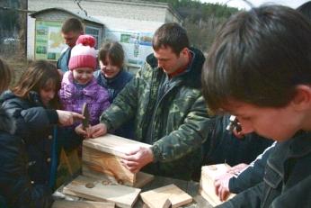 Diylalnist 2013 3За сприяння Харківської ОО ВЕЛ в НПП «Гомільшанські ліси» 1 квітня був проведений природоохоронний захід «Міжнародний День птахів». Участь в заході взяли учні загальноосвітніх шкіл Зміївського району. Працівники Коропівського природоохоронного відділення навчили школярів власноруч майструвати шпаківні для птахів та на очах у всіх присутніх встановили гніздові платформи для лелек, яких в парку залишилося всього три пари. Після практичної частини заходу, почалася творча – школярі підготували вірші та гуморески про птахів. Голова обласної організації нагородив переможців конкурсу малюнків подяками та цінними подарунками і подарував школам Зміївського району комплекти літератури природоохоронної тематики.