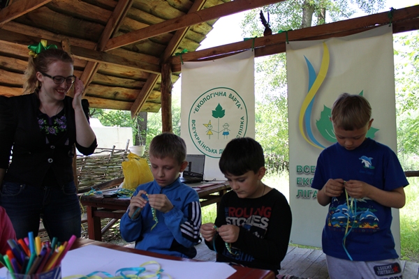Фахівці Всеукраїнської екологічної ліги також навчили дітей виготовляти патріотичні браслети зі стрічок та бусин. Усі учасники були захоплені таємничим процесом стрічкоплетіння. Кожна дитина мала змогу намалювати малюнок та написати побажання для воїнів АТО.