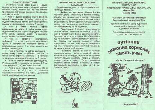 1. Путівник зимових корисних занять учня. Серія «Екологія і здоров’я». – Чернігів, 2002.