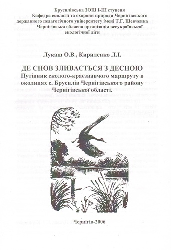 8. Лукаш О. В., Кириленко Л. І. Де Снов зливається з Десною. Путівник еколого-краєзнавчого маршруту в околицях с. Брусилів Чернігівського району Чернігівської області. – Чернігів, 2006. – 23 с.