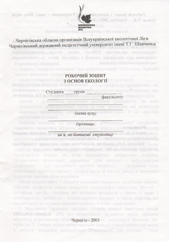 1. Робочий зошит з основ екології / Упорядник – канд. біол. наук Лукаш О. В. – Чернігів, 2001. – 24 с.