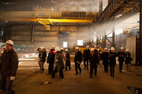 ecoforum2 1 of 14925 жовтня 2013 р. учасники конференції відвідали ПАТ «Алчевський металургійний комбінат», де мали змогу ознайомитися з сучасними технологіями зменшення викидів забруднюючих речовин в навколишнє середовище. Генеральний директор ПАТ «АМК» Тарас Шевченко розповів про роботу зі зменшення техногенного впливу підприємства на екологічний стан Алчевська: «Реалізація заходів інвестиційної програми уже дала змогу станом на 1 січня 2013 р. скоротити 120 джерел викидів шкідливих речовин в атмосферне повітря, що зменшило кількість таких викидів на 15,3 тис. т/рік. У рамках програми модернізації комбінату триває будівництво газотурбінної станції (ГТС). У 2012 р. було закінчено будівництво інфраструктури ГТС першої черги (сума інвестицій – 421,3 тис. грн)».