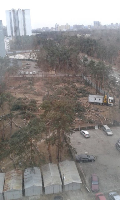 1505239 424302314391265 4304805124891315048 nУ Києві на вулиці Генерала Жмаченка, 28 (Дніпровський район) заплановано побудувати багатоповерхівку в парковій зоні. За дорученням забудовника, яким є компанія «ДІСБУД», вже зрубано більше 200 сосен без попередньої згоди місцевих мешканців. Як зазначають активісти, не було проведено попередніх громадських слухань щодо запланованого будівництва.